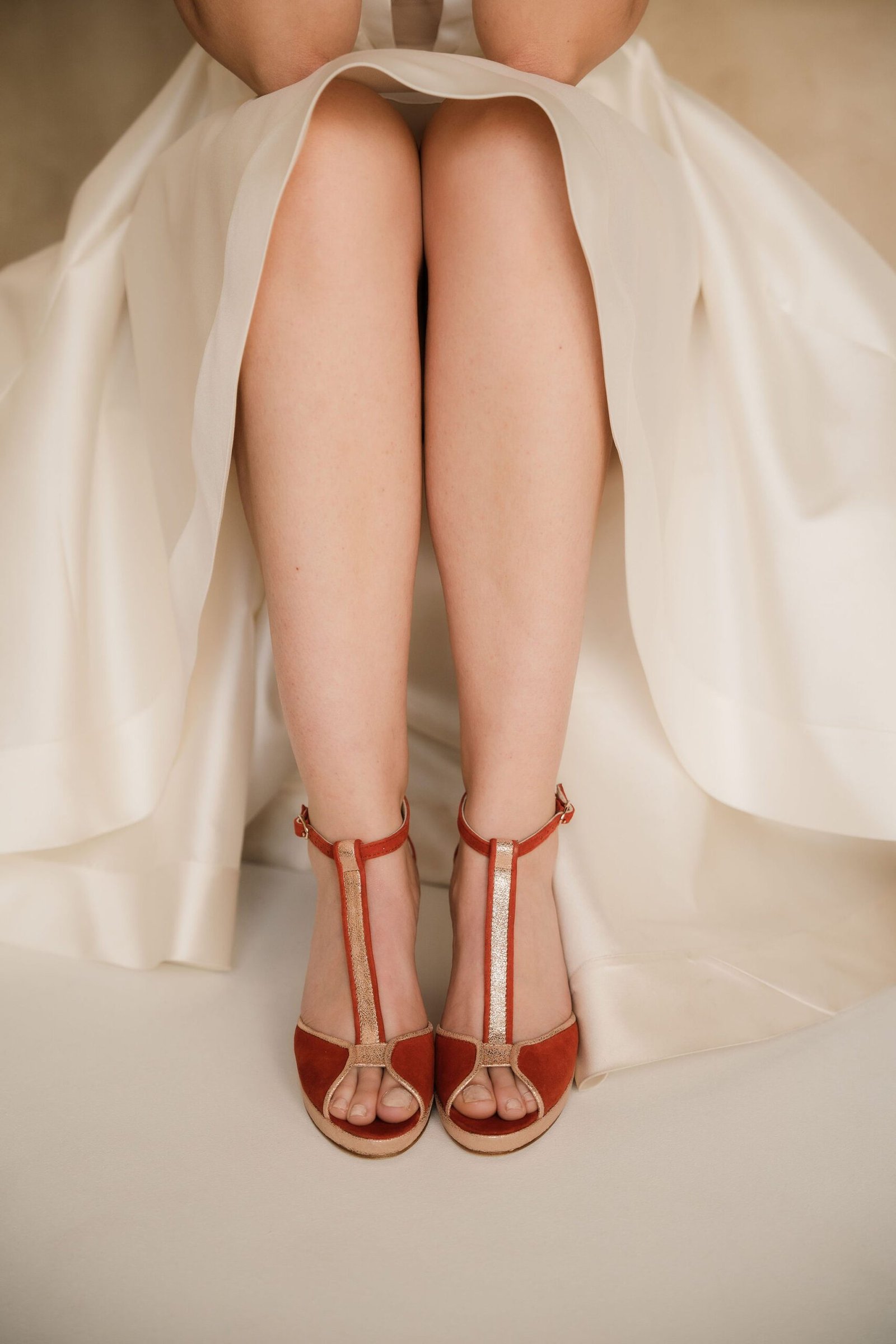 Chaussures de mariage terracotta, nos sandales Charlotte sont les indispensables pour les mariages à thème terracotta.