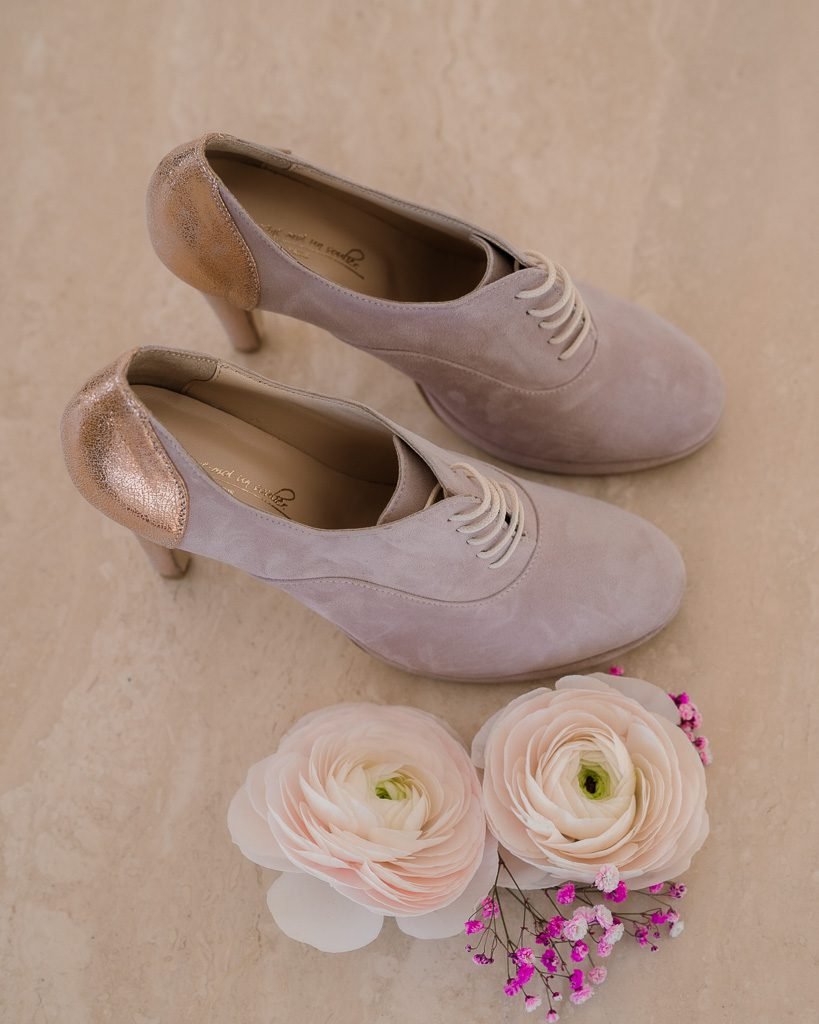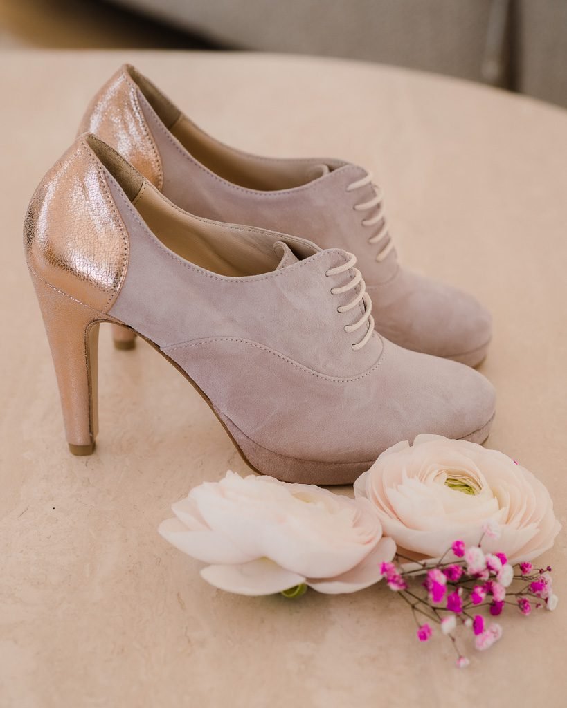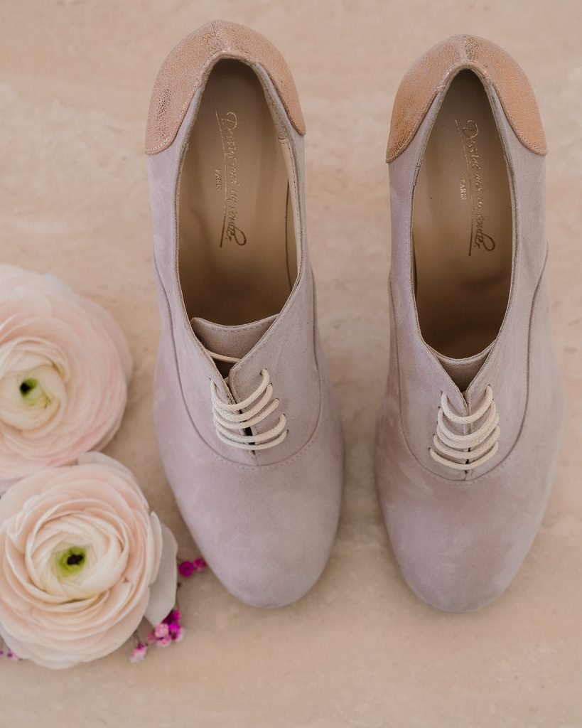 Avec leur teinte rose poudrée, ces richelieus à talons d’hiver pour mariée sont un choix idéal pour une allure moderne et sophistiquée. Commandez dès aujourd’hui pour compléter votre tenue de mariage hivernale avec élégance et confort !