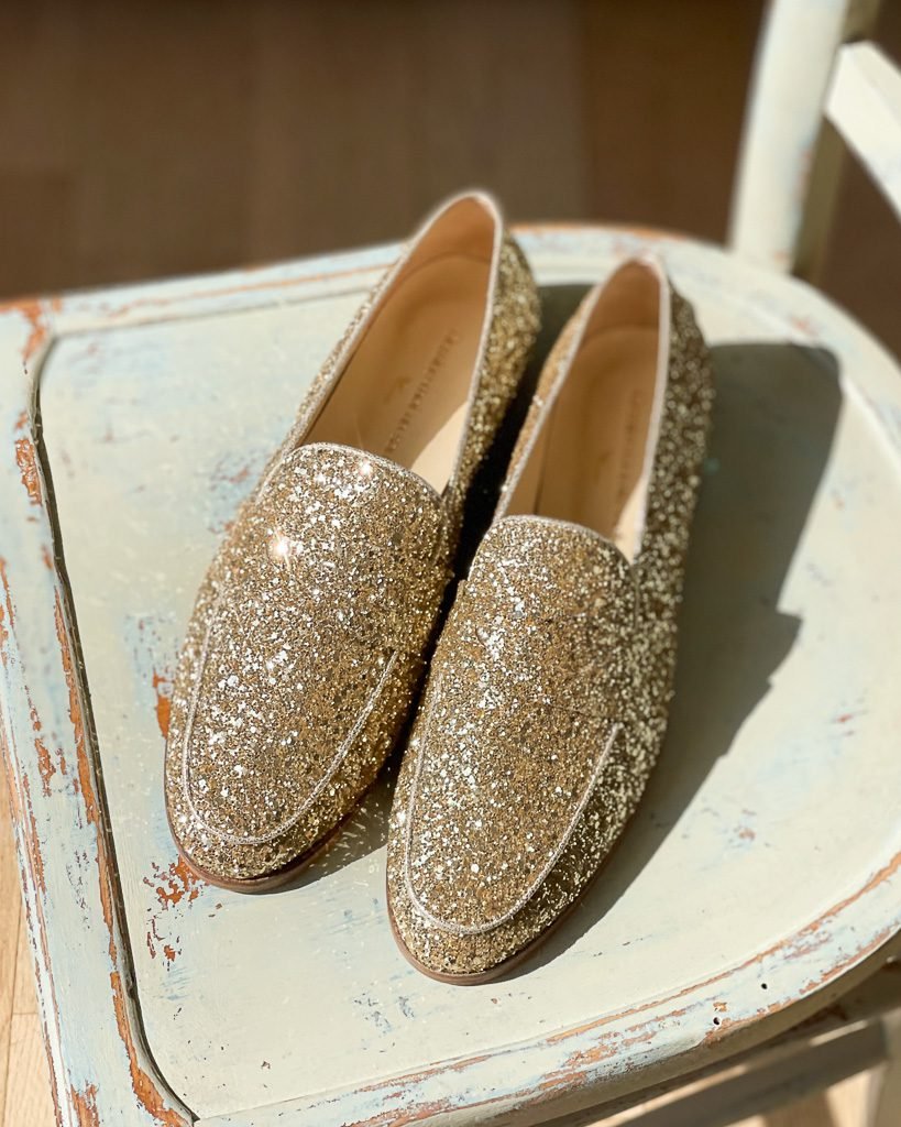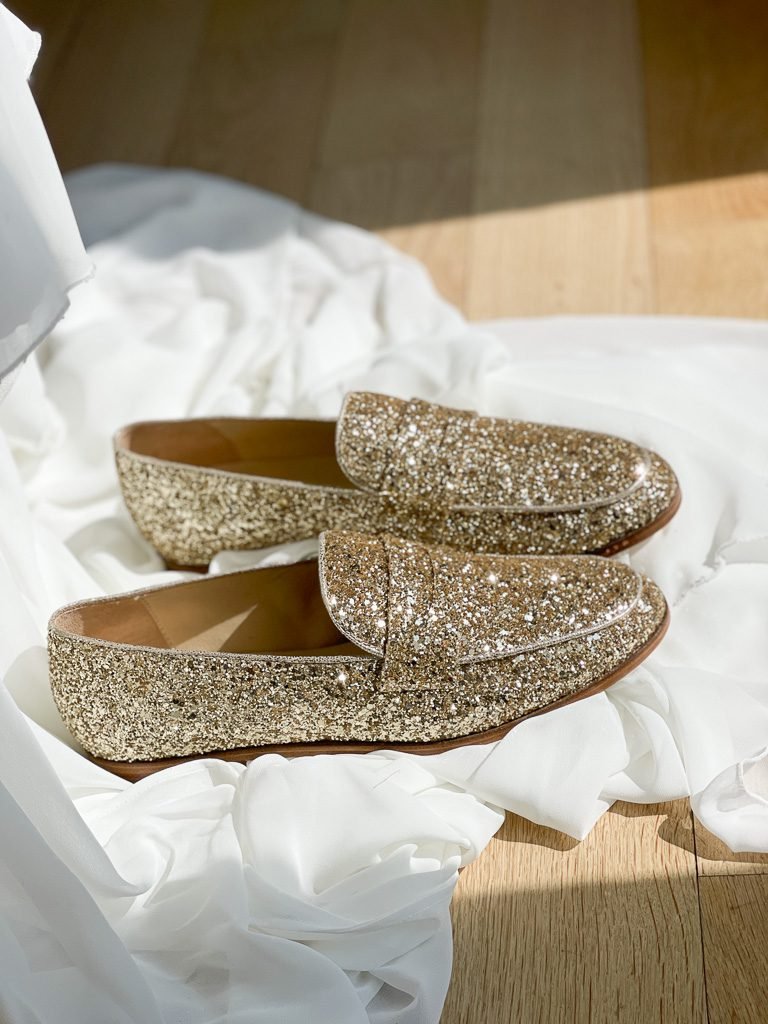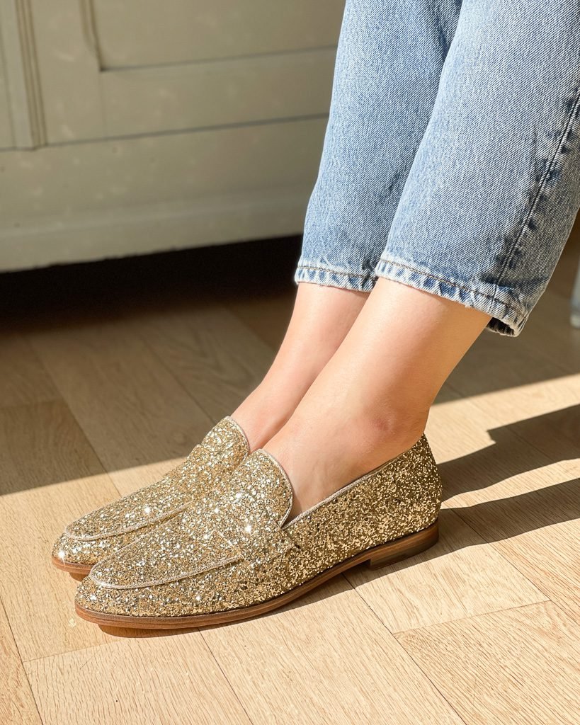 Mocassin en glitter champagne.