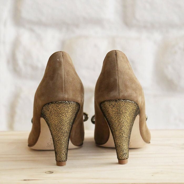 Escarpin en velours fauve et irisé bronze - 100.00
